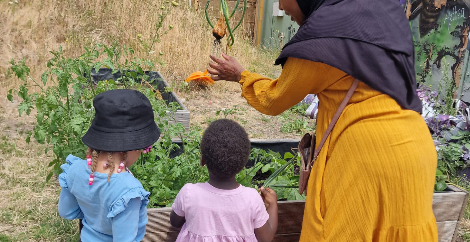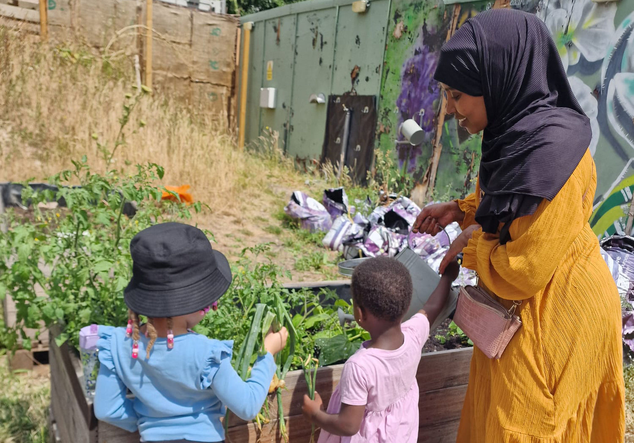 In the Community Gardens, the youngest members of the community are getting stuck in. A local childminder now brings children aged 2–4 four times a week, where they dig, water, and watch their own vegetables grow in a shared planter. What starts as play has become a chance to see how food is grown, care for it, and enjoy the reward of picking it. The garden and play area give the children space to explore and connect with nature in their own way.